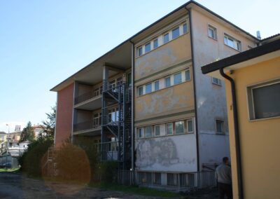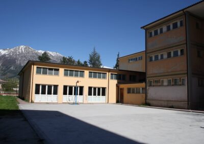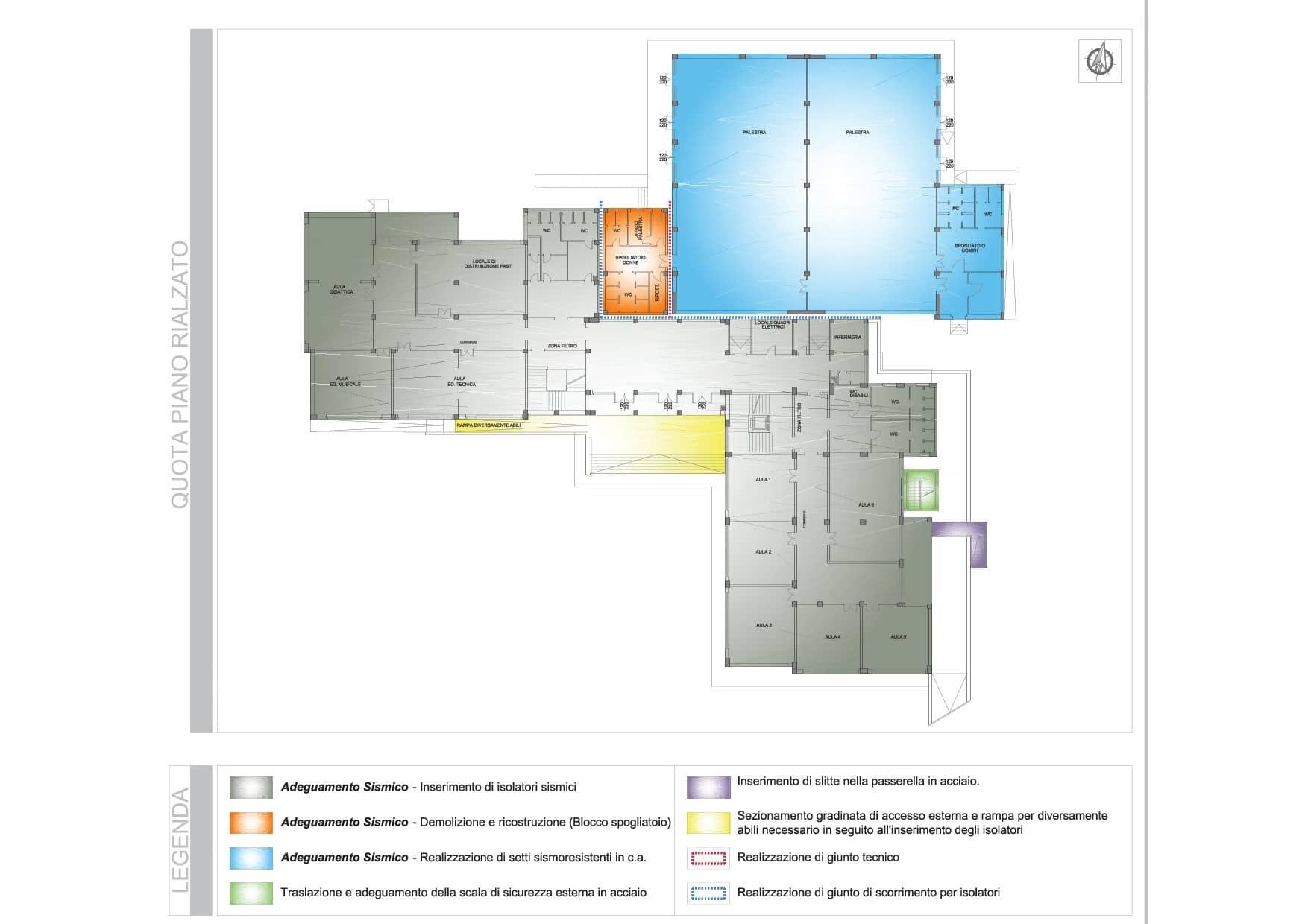 L’intervento principale riguarda l’adozione di un sistema di isolamento sismico alla base dei corpi principali dell’edificio (A e C), che ridurrà significativamente le accelerazioni e le deformazioni dovute a eventi sismici. Grazie a questo sistema, non solo la struttura portante sarà protetta, ma anche gli elementi non strutturali come pareti e impianti, mantenendo così l’edificio completamente funzionale anche in caso di terremoto. Per il corpo B, che comprende la palestra, è stato scelto un sistema a pareti sismo-resistenti in cemento armato, progettato per assorbire le sollecitazioni sismiche senza richiedere interventi invasivi sulle strutture esistenti.