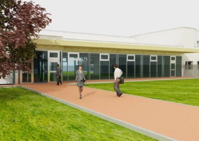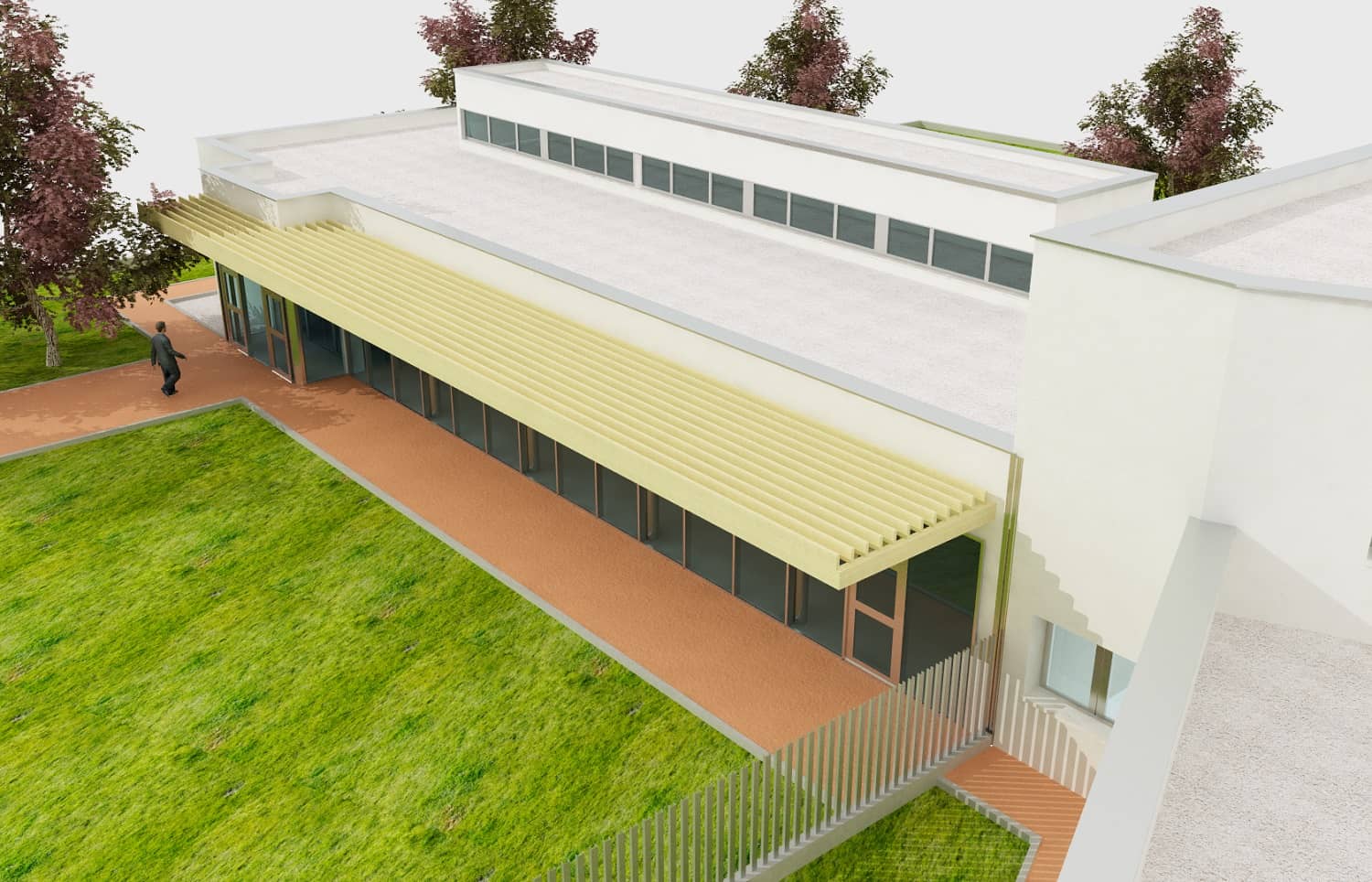 Il sisma del 2012 ha provocato gravi danni agli edifici pubblici, tra cui la Scuola Media Giovanni XXIII, spingendo l’Amministrazione Comunale a intervenire con soluzioni temporanee. L’obiettivo primario del progetto è migliorare la qualità della vita culturale ed educativa della comunità locale attraverso una riqualificazione completa dell’area, rafforzando il ruolo di San Venanzio come punto centrale per la comunità di Galliera.