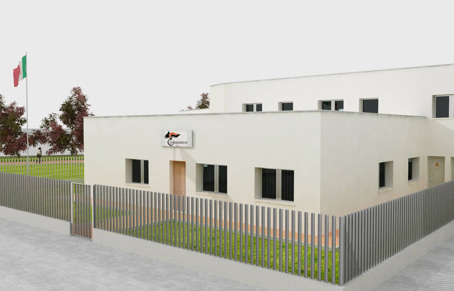 La biblioteca scolastica sarà strutturata su un livello rettangolare di dimensioni 12.05 x 27.15 metri, con un’altezza di 4.30 metri, caratterizzata da un design moderno che combina calcestruzzo armato e acciaio per garantire resistenza e flessibilità. Saranno presenti spazi dedicati per la consultazione e il prestito libri, studi individuali e di gruppo, e accesso a risorse digitali. La caserma dei Carabinieri, invece, si articolerà su due livelli con una struttura a telaio in calcestruzzo armato, ottimizzata per rispondere alle esigenze operative dell’Arma dei Carabinieri, con uffici, spogliatoi e aree per la custodia e l’armeria.