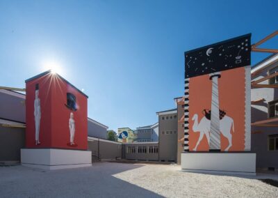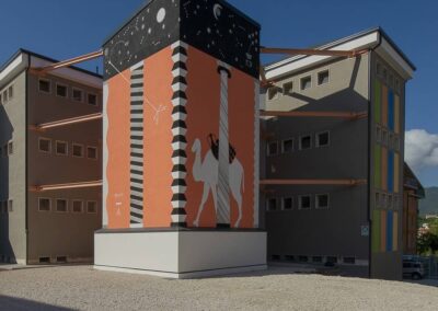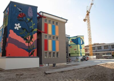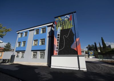 Infine, il progetto è stato arricchito da murales realizzati tramite un concorso, che hanno contribuito a rendere l’ambiente più moderno e accogliente per gli studenti.